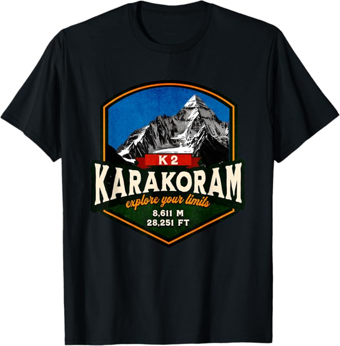 The K2 Karakoram graphic design features a stunning depiction of the majestic K2 mountain, the second-highest peak in the world, nestled amidst the rugged beauty of the Karakoram Range.